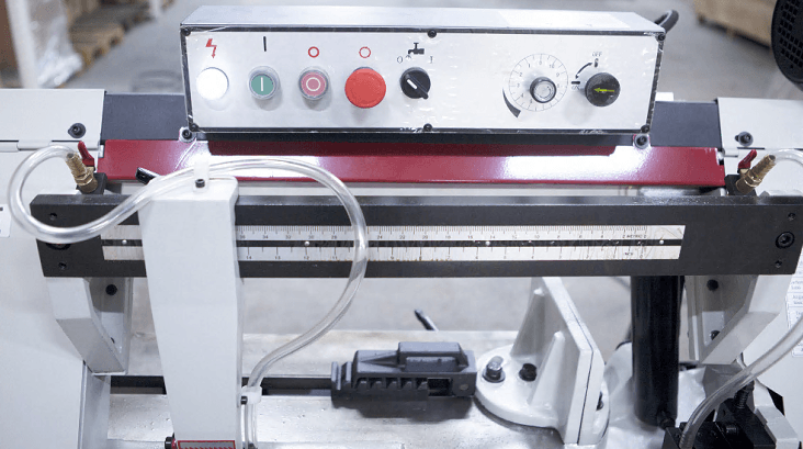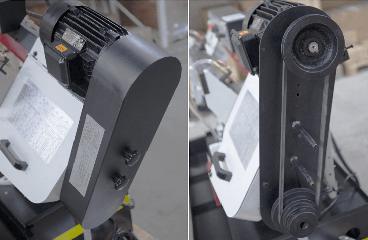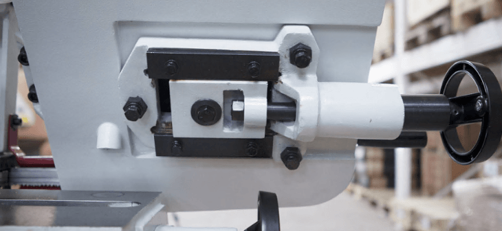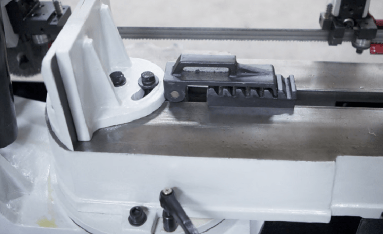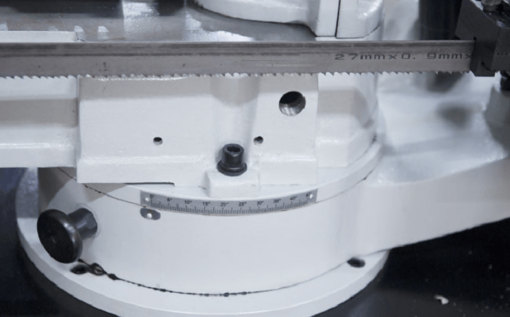 В рабочей зоне резания полотно точно ведется двумя направляющими головками. Станок имеет неподвижные тиски и поворотный механизм рамы, для пиления под углом необходимо изменить положение рамы относительно неподвижных тисков. Высота полотна 27мм позволяет пилить c высокой точностью и параллельностью полые и профильные заготовки под различными углами, в том числе и сплошные заготовки.